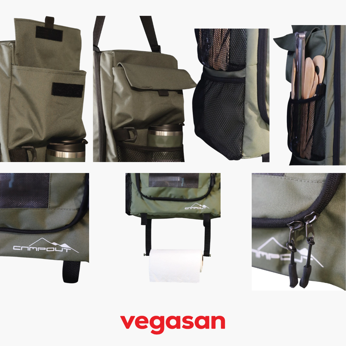 Kompakt çantasından çıkan 3 katlı geniş depolama alanı sayesinde kamp ve outdoor aktivitelerde düzenli ve hijyenik bir mutfak alanı oluşturur. Dayanıklı Oxford kumaşı, file kapaklı tasarımı ve suya dayanıklı raf yapısıyla pratik ve uzun ömürlü kullanım sunar.