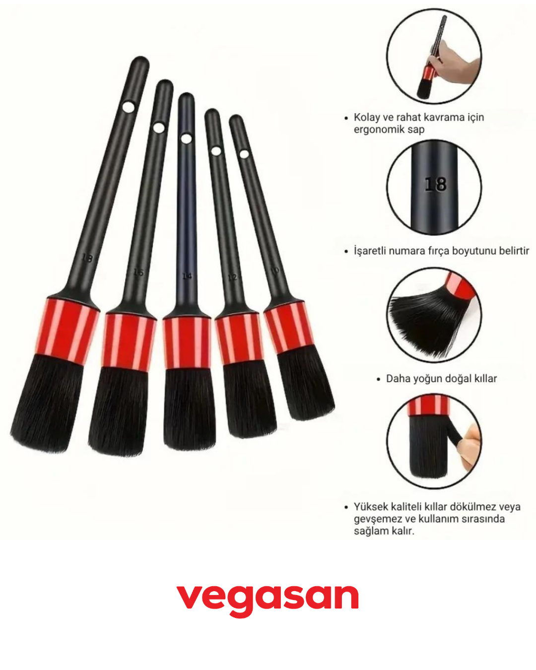 Oto Detay Temizlik Fırça Seti 5’li, farklı boyutlardaki ultra yumuşak kılları sayesinde aracınızı çizmeden en dar ve hassas bölgeleri bile güvenle temizlemenizi sağlar. İç ve dış detay temizlik için idealdir.
